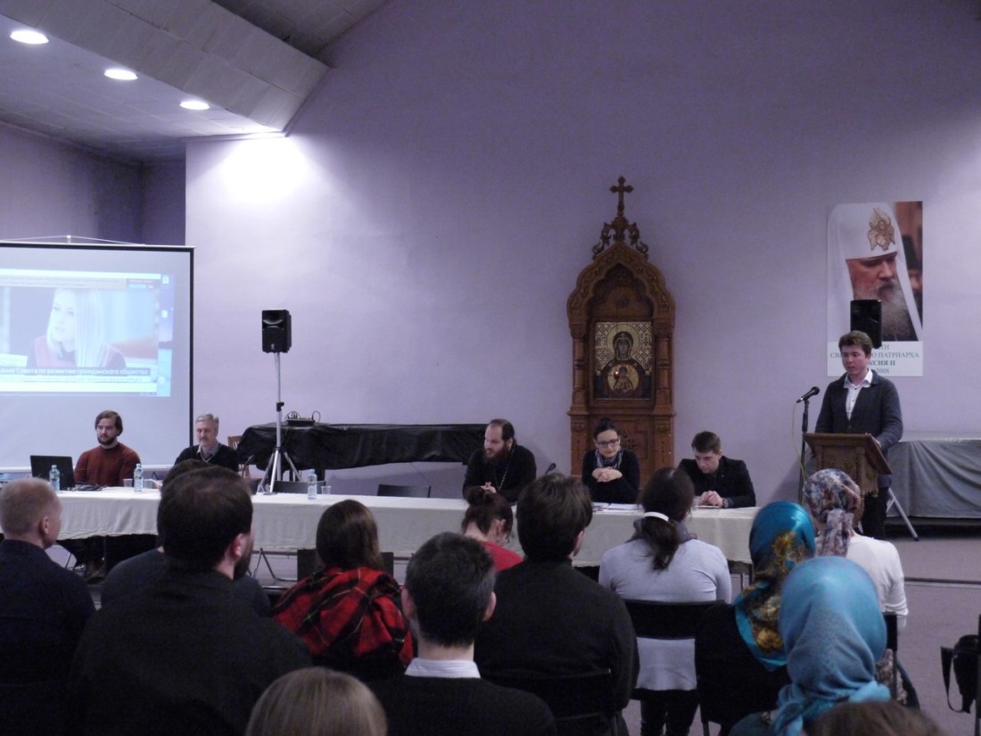 Перед участниками также выступил руководитель информационной службы Молодёжного отдела Максим Соколов, который обратил внимание собравшихся на важность личной активности каждого православного христианина в интернете и разговора в первую очередь о любви — только так можно противодействовать любому негативу и злу в социальных сетях.