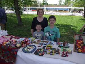 - ученики Воскресной группы, Федор и Гавриил Адонины, и преподаватель Дорошенко Елена Николаевна приняли участие в благотворительной ярмарке Белый цветок», которая проходила 8 мая на территории ВВЦ. На ярмарке были представлены поделки всей учебной группы, которые были сделаны за год.