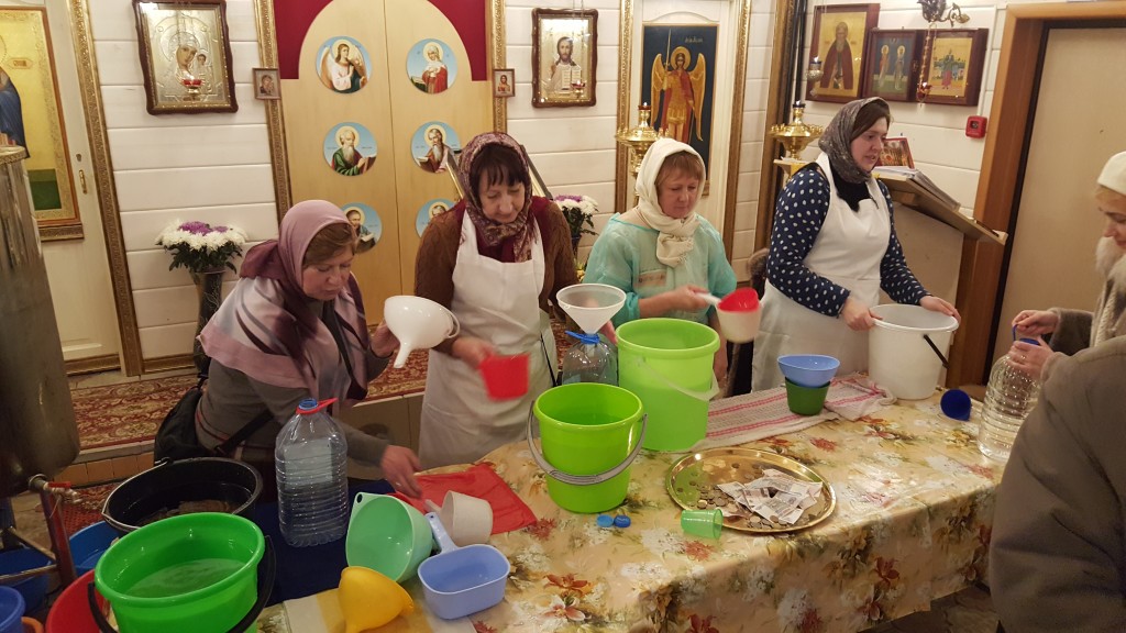 После службы активные прихожане начали раздачу святой воды и просветительских листовок о празднике.