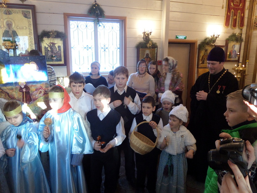 По окончании представления участники концерта и зрители спели общую заключительную песню, после чего настоятель храма протоиерей Андрей Михайлов подарил всем детям, пришедшим в этот день в храм, подарки.