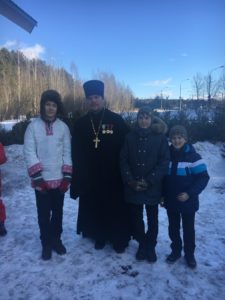 Хорошенько набегавшись и повеселившись на морозе, все участвующие были приглашены в часовню, где были накрыты столы с блинами, сладостями и прочими угощениями и горячим чаем.