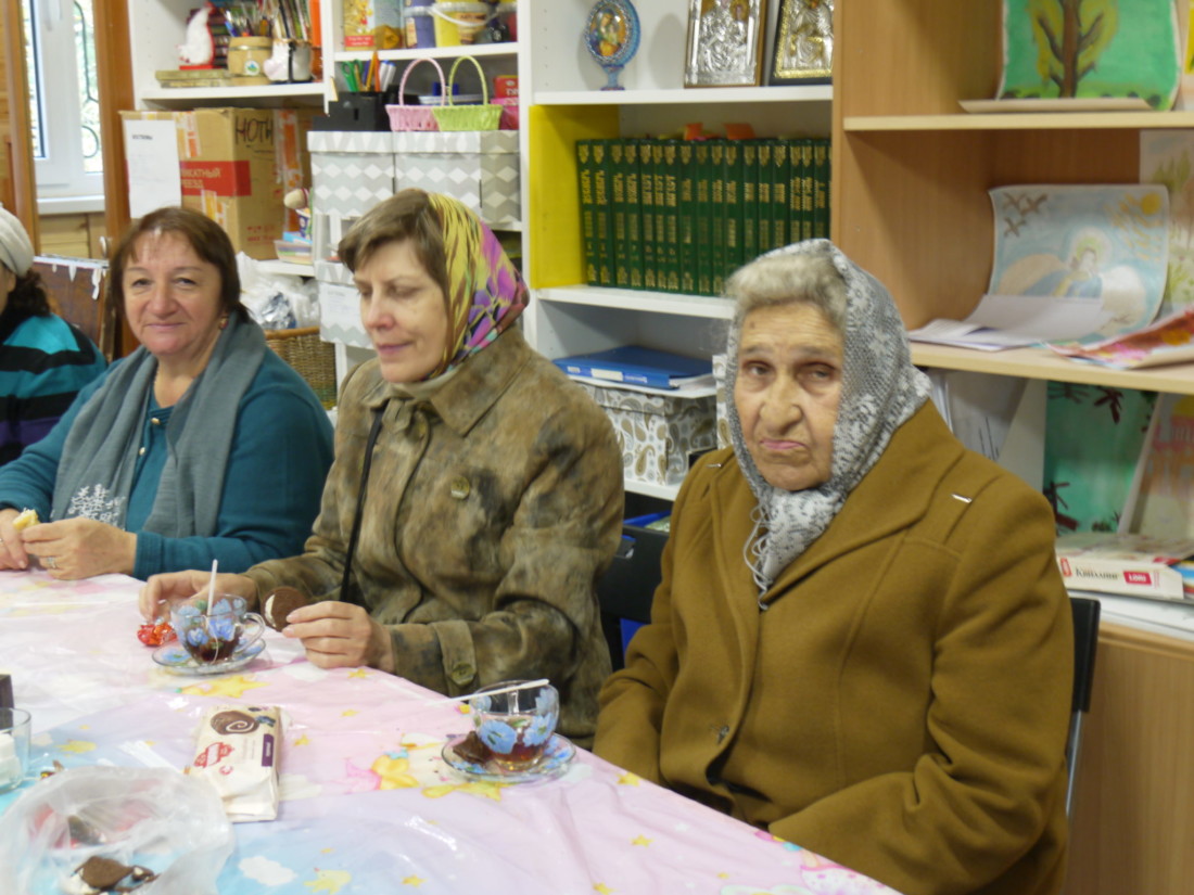 По окончании Божественной Литургии, в помещении Воскресной школы храма, социальными работниками, было устроено чаепитие для пожилых прихожан, чтобы выразить свою благодарность им за все, что они сделали, за многие годы и до сих пор продолжают делать для общества, за их оптимизм, которому стоит позавидовать.