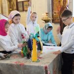 После вступительного слова настоятеля протоиерея Андрея Михайлова учащиеся воскресной школы показали вертепное представление.